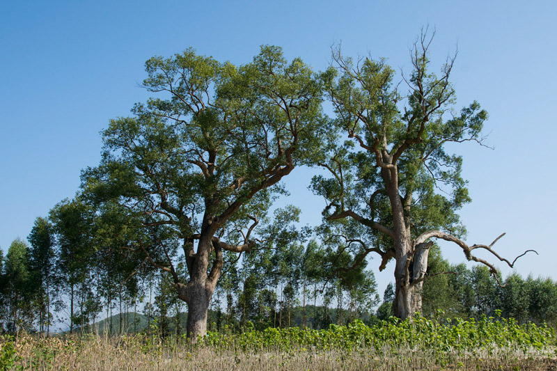 收集有广东、广西等地种源,广东湛江粤西南亚热带植物园附近保存有500年的古樟林,被称作“云脚古樟神林”,紫金县是黄樟主要分布区,也是右旋芳樟的发源地之一;广西也是以樟树生产香料香精为主的产地之一,南宁市拟将芳樟产业作为地区主要产业发展,鹿寨县尚存千年以上古樟群,其中一株树龄达1500年。