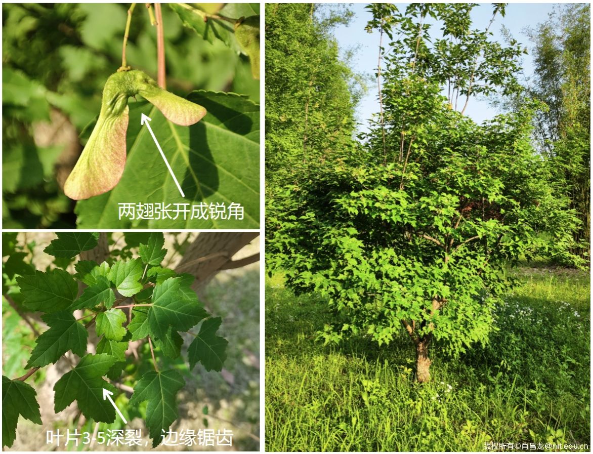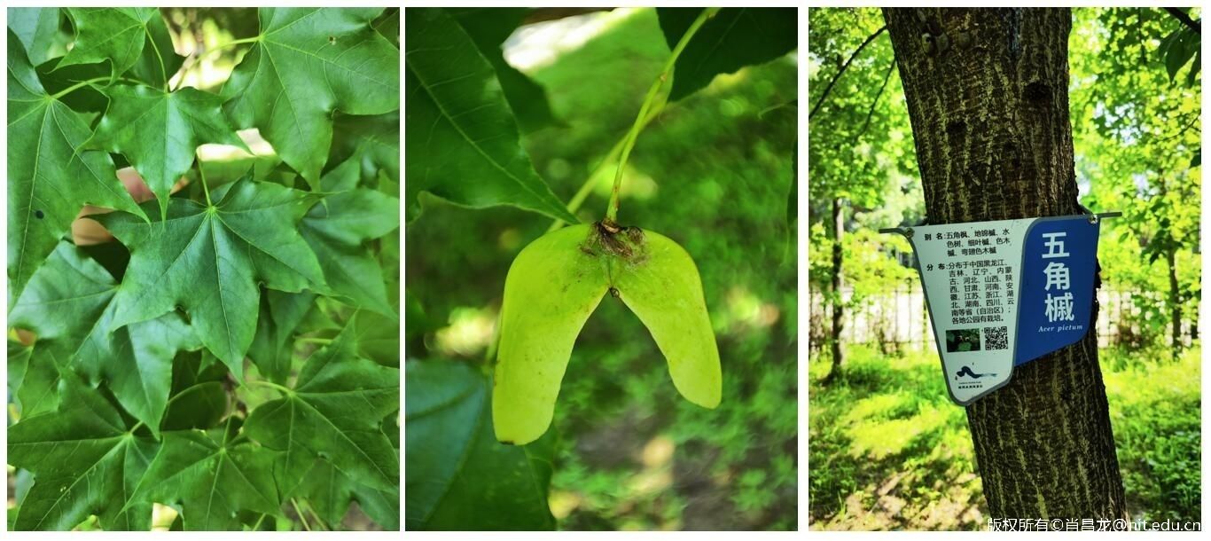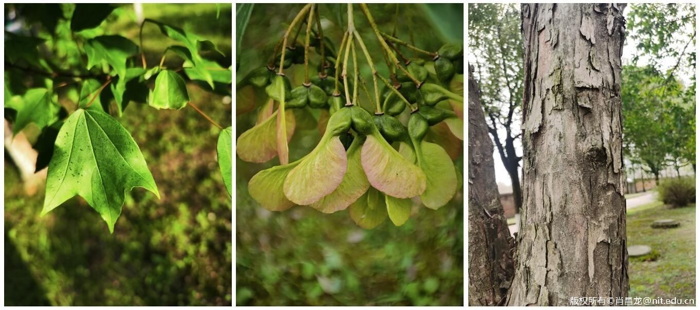 图1.1 三角槭的叶、果实、树干(由左至右)