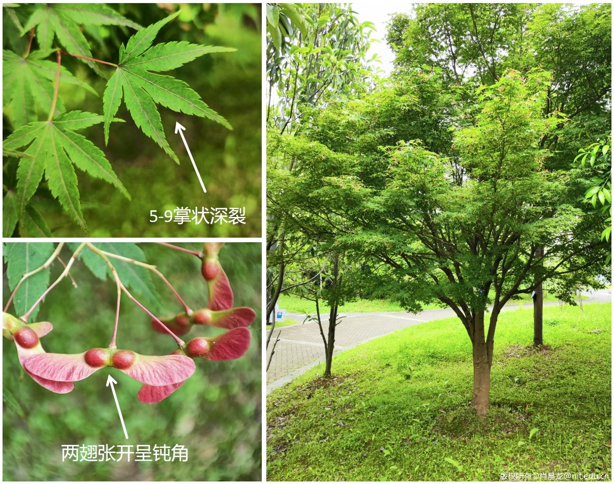 羽毛槭为鸡爪槭的变种,其叶片掌状深裂几达基部,裂片狭长,又羽状细裂,树体较小。