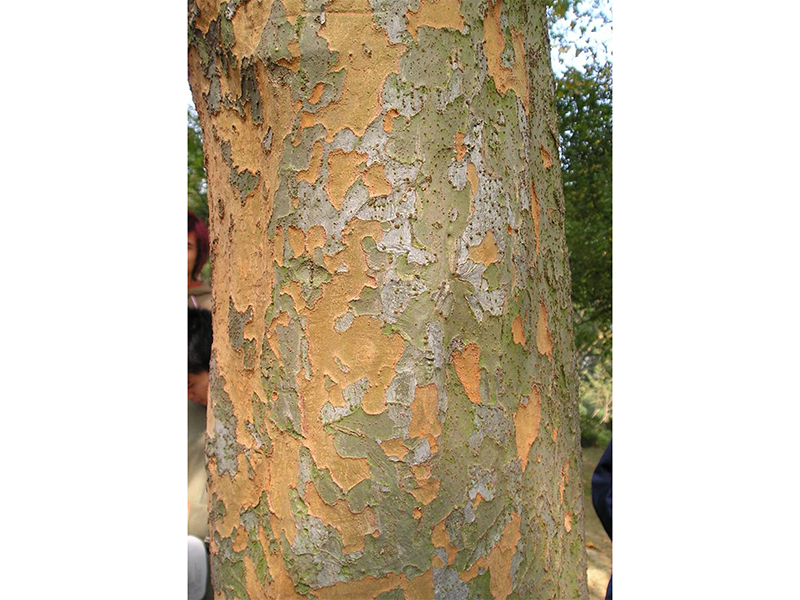 榔榆Ulmus parvifolia Jacq. (榆科Ulmaceae)落叶乔木;高达20m,胸径1m;树皮灰褐色,不规则鳞状剥落,露出红褐色或绿褐色内皮。小枝红褐色,被柔毛。叶窄椭圆形或卵形,长1.5—5.5cm,宽1—3cm,先端短尖或略钝,基部偏斜,单锯齿,幼树及萌芽枝之叶为重锯齿。花秋季开放,簇生于当年生枝叶腋;花萼4裂至基部或近基部。翅果椭圆形或卵形,长0.9—1.2cm。花期8-9月,果期10-11月。