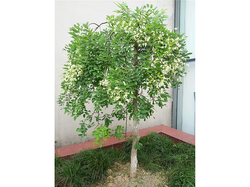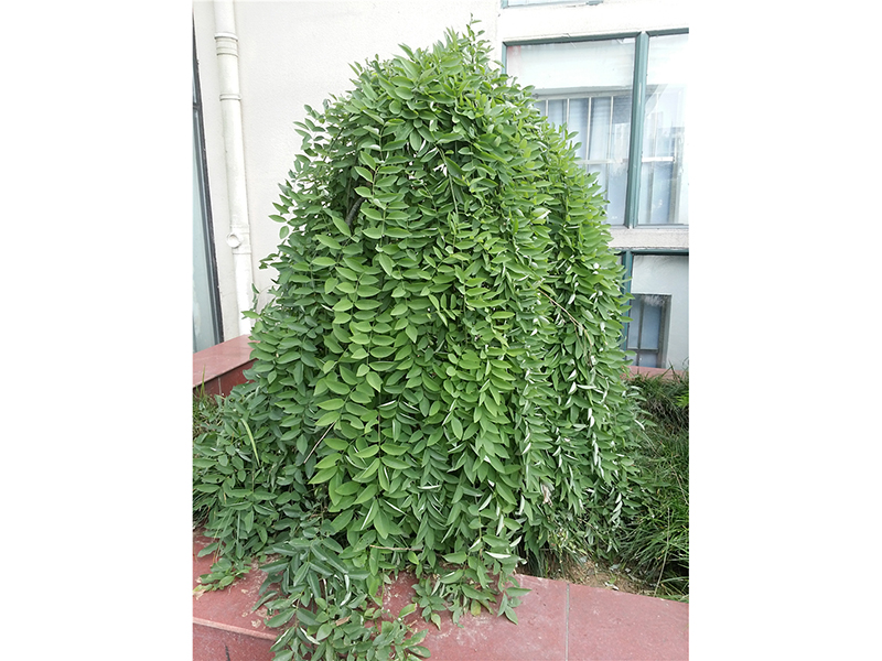 龙爪槐Sophora japonica var. pendula Loud. (蝶形花科Fabaceae)为国槐栽培变种。小枝弯曲下垂,树冠呈伞状,园林中多有栽植,常对植。