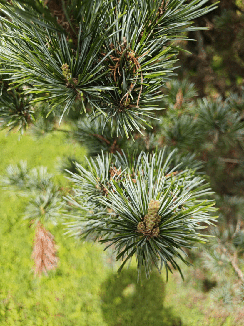 识别要点:本种与台湾五针松的区别:一年生枝幼时绿色,后为黄褐色,密被淡黄色柔毛;针叶长3.5-5.5厘米;球果长4-7.5厘米,径3.5-4.5厘米,无柄;种子具宽翅,翅与种子近等长;;