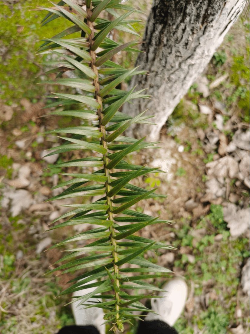 叶:叶披针形或窄,常呈镰状,革质、竖硬;