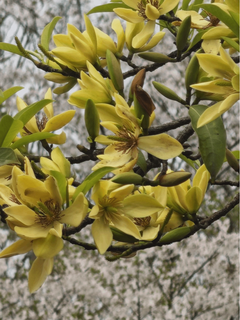 花:花芳香,淡黄色;花梗长0.4-1厘米,被灰色平伏微柔毛,具2-5苞片痕;花被片6,2轮,外轮倒卵状椭圆形,长约3厘米,内轮较窄;雄蕊长1.7-2厘米,花药长1.1-1.5厘米,药隔短尖;雌蕊群窄圆柱形,长约1.5厘米,柄长约7毫米,密被银灰色平伏微柔毛心皮卵圆形,胚珠约6枚;