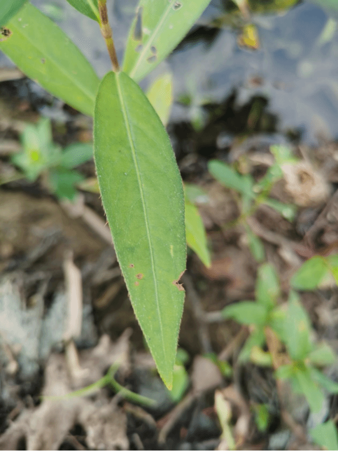叶: 叶近薄革质,披针形,长5-15厘米,宽1-2厘米,先端渐尖,基部楔形,两面疏被平伏硬毛,具剌状缘毛;叶柄短;托叶鞘长1.5-2厘米,被平伏硬毛,缘毛长1-1.2厘米;