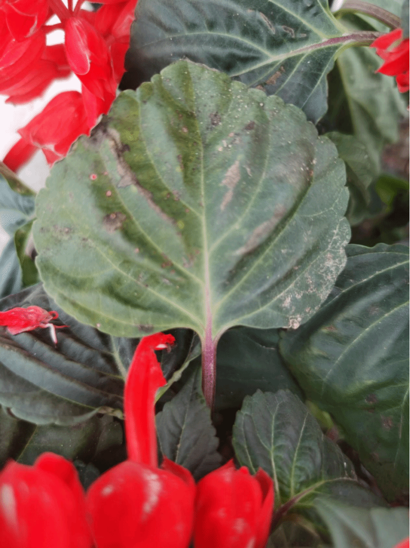 花:轮伞花序2-6花,组成顶生总状花序,花序长达20厘米或以上;苞片卵圆形,红色,大,在花开前包裹着花蕾,先端尾状渐尖;花梗长4-7毫米,密被染红的具腺柔毛,花序轴被微柔毛;花萼钟形,红色,开花时长约1.6厘米,花后增大达2厘米,外面沿脉上被染红的具腺柔毛,内面在上半部被微硬伏毛,二唇形,唇裂达花萼长1/3,上唇三角状卵圆形,长5-6毫米,宽10毫米,先端具小尖头,下唇比上唇略长,深2裂,裂片三角形,先端渐尖;