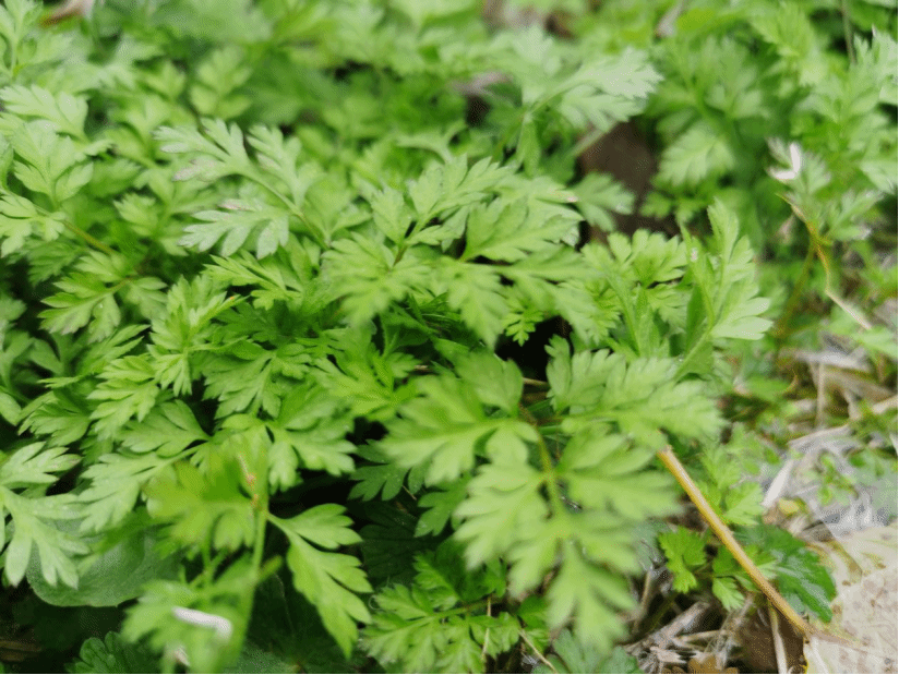 叶:叶卵形,:回羽状分裂,小叶窄披针形或卵形,长0.2-1厘米,宽2-5毫米,先端渐尖,有缺刻状锯齿或分裂;叶柄长3-4厘米;
