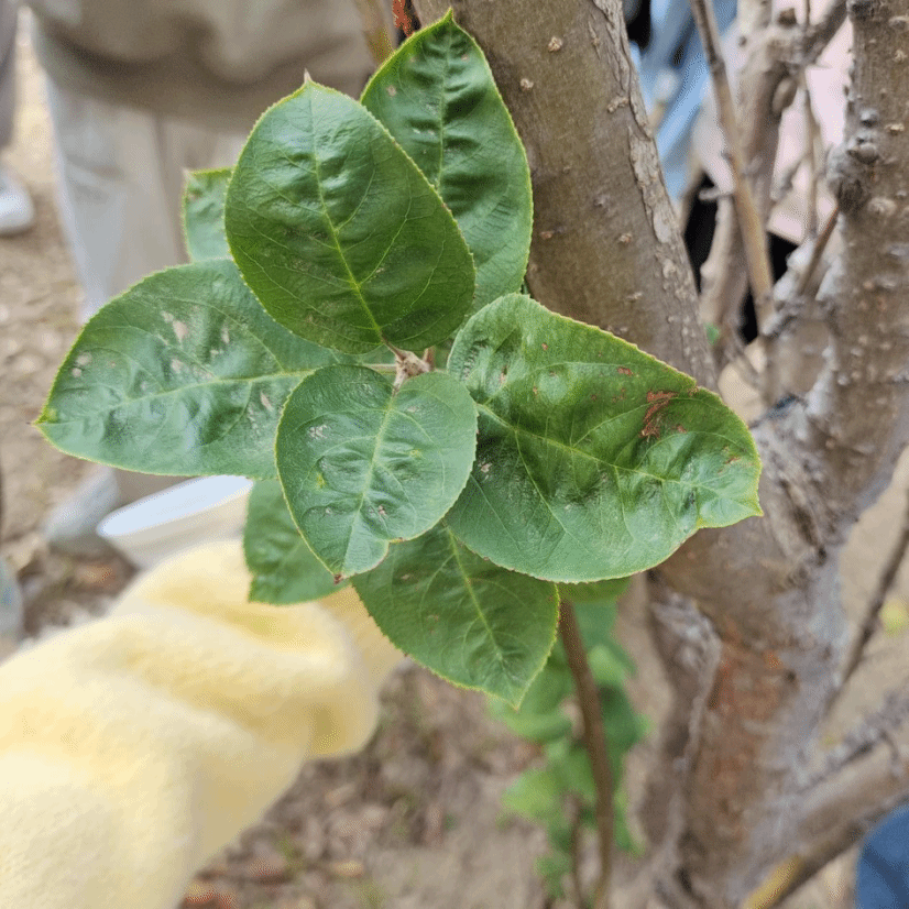 叶:叶片形状较狭长,基部楔形,叶边锯齿稍锐,叶柄细长,果实基部下陷;