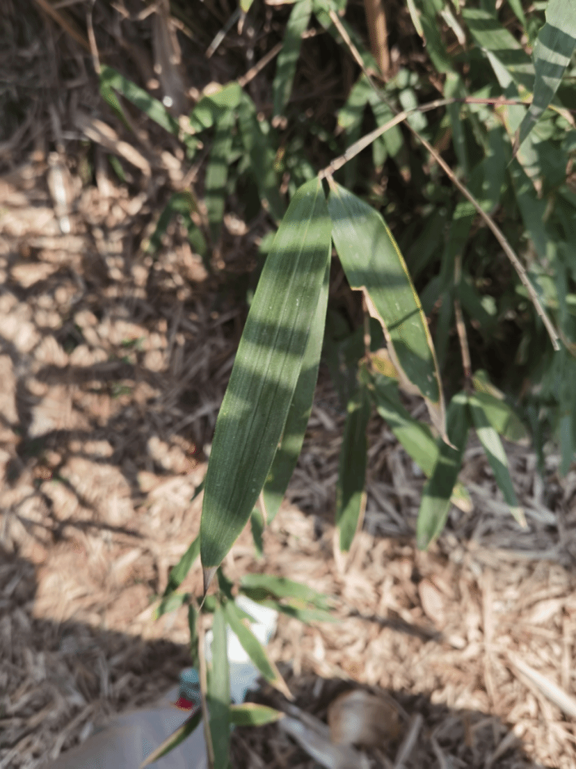 枝:每小枝2-3叶;常无叶耳和縫毛;叶舌隆起,先端弧形,有缺裂;叶长7-16厘米,宽1.3-2厘米,下面基部有毛;