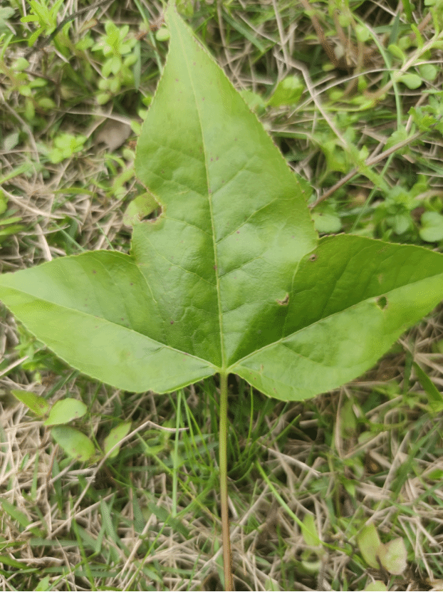 叶:叶宽卵形,掌状3裂,基部心形具锯齿;托叶线形,早落;