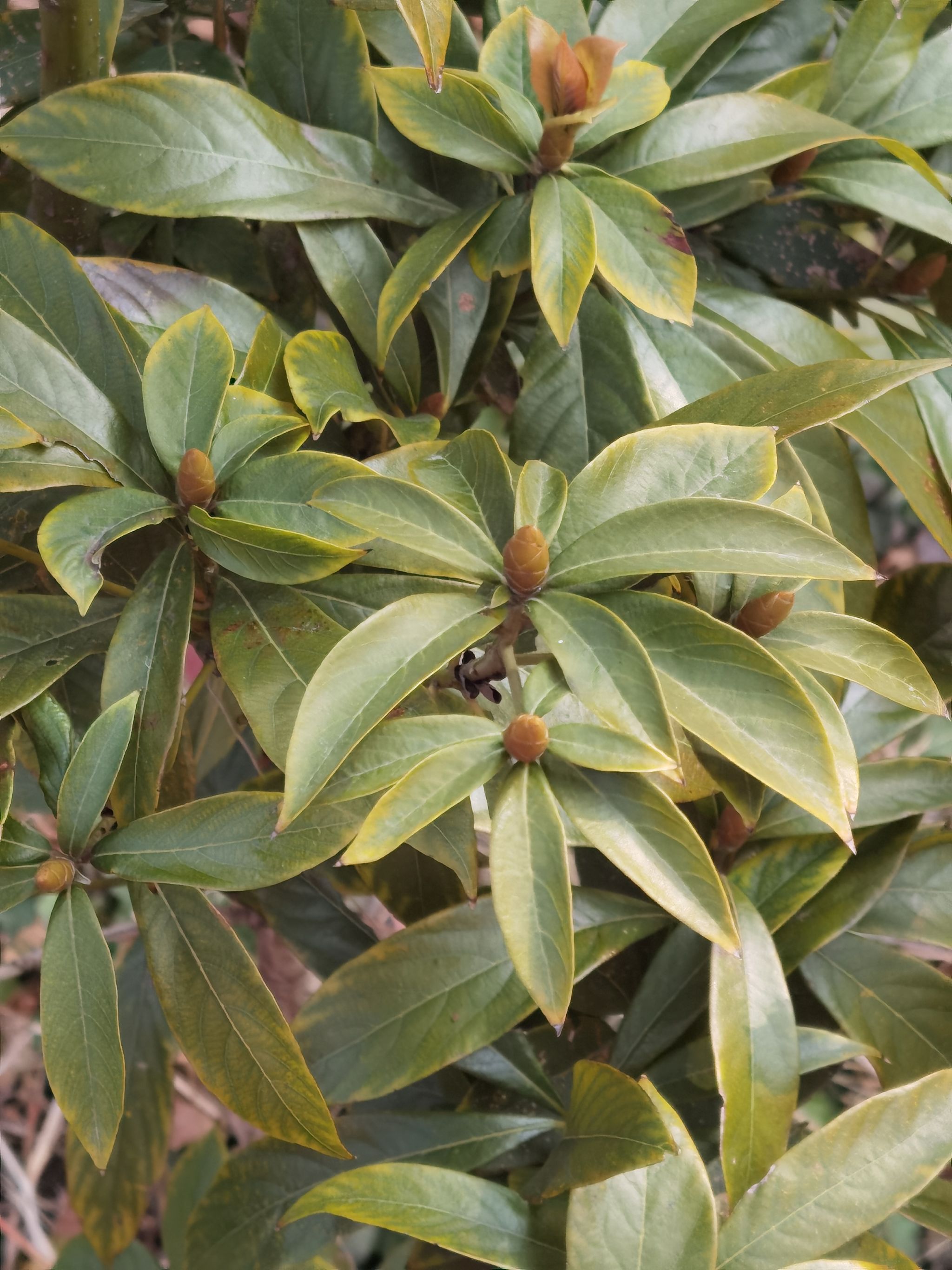 叶:叶革质,椭圆形,少为披针形或倒披针形,长7-11(13)厘米,宽2.5-4厘米,先端渐尖,尖头直或呈镰状,基部楔形,最末端钝或尖,上面光亮无毛或沿中脉下半部有柔毛,下面密被短柔毛,脉上被长柔毛,中脉在上面下陷成沟,下面明显突起,侧脉每边8-13条,斜伸,上面不明显,下面明显,近边缘网结,并渐消失,横脉在下面略明显或不明显,小脉几乎看不见,不与横脉构成网格状或很少呈模糊的小网格状;叶柄细,长1-2.2厘米,被毛
