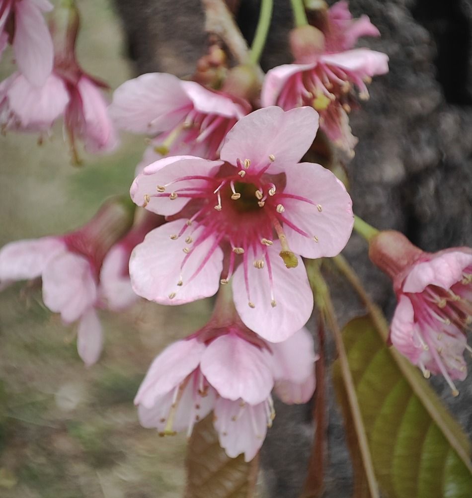 查看详情 时间:2025年03月28日蛇年元宵节前后,虽然天气连续阴冷,但是依然抵挡不住春天的气息,校园里的早樱渐渐醒来,绽放出美丽的花朵!校园里的早樱有寒樱和钟花樱,作为樱花家族的“急先锋”,每年冬季至早春时节便率先绽放,与梅花争艳,为萧瑟的冬日注入一抹浪漫的粉红色彩。寒樱(Prunus kanzakura)寒樱为蔷薇科李属落叶小乔木,花期1-3月。寒樱是钟花樱和山樱类的杂交品种,树皮紫褐色,常呈黑色。枝条斜向上伸展,树形成瓶状,小枝较粗;花瓣5枚,…